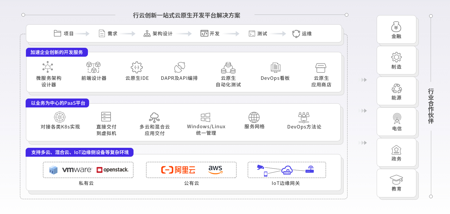 其产品在广西贵港智慧城市、长三角产学研一体化创新平台、海尔工业互联网、中信银行核心系统建设等项目中起到关键的支撑作用。同时,作为信创工委会成员,kaiyun开云创新打造业界领先的“信创与非信创统管、一键向信创迁移”的方案,并在某大型国有银行取得了良好的实践效果。2021年,行云受邀参与工信部云原生相关标准的制定,今年更是聚焦在数字化转型的大方向上,通过其领先的产品践行“让所有企业都能高效创新”的使命。